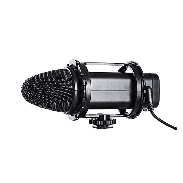 ไมโครโฟนคอนเดนเซอร์ แบบสเตอริโอ สำหรับกล้อง DSLR กล้องวิดีโอหรือเครื่องบันทึกเสียงดิจิตอล เพิ่มการควบคุมและคุณภาพเสียงที่ดีกว่าการใช้ไมโครโฟนภายในตัวกล้อง มี shock mount สามารถติดตั้งบน hot shoe กล้อง ที่มีเกลียวมาตรฐาน และต่อเข้ากับช่องเสียบไมโครโฟนโดยตรง ให้เสียงในระบบสเตอริโอที่ชัดเจน ที่กั้นลมช่วยลดเสียงรบกวนจากสภาพแวดล้อม หรือแม้กระทั่งเสียงการทำงานของตัวกล้อง เช่น เสียงเวลาใช้งานระบบออโต้โฟกัส ใช้พลังงานจากแบตเตอร์รี่ AAA ตัวไมโครโฟนถูกออกแบบมาให้มีขนาดกะทัดรัดน้ำหนักเบา สะดวกต่อการใช้งาน