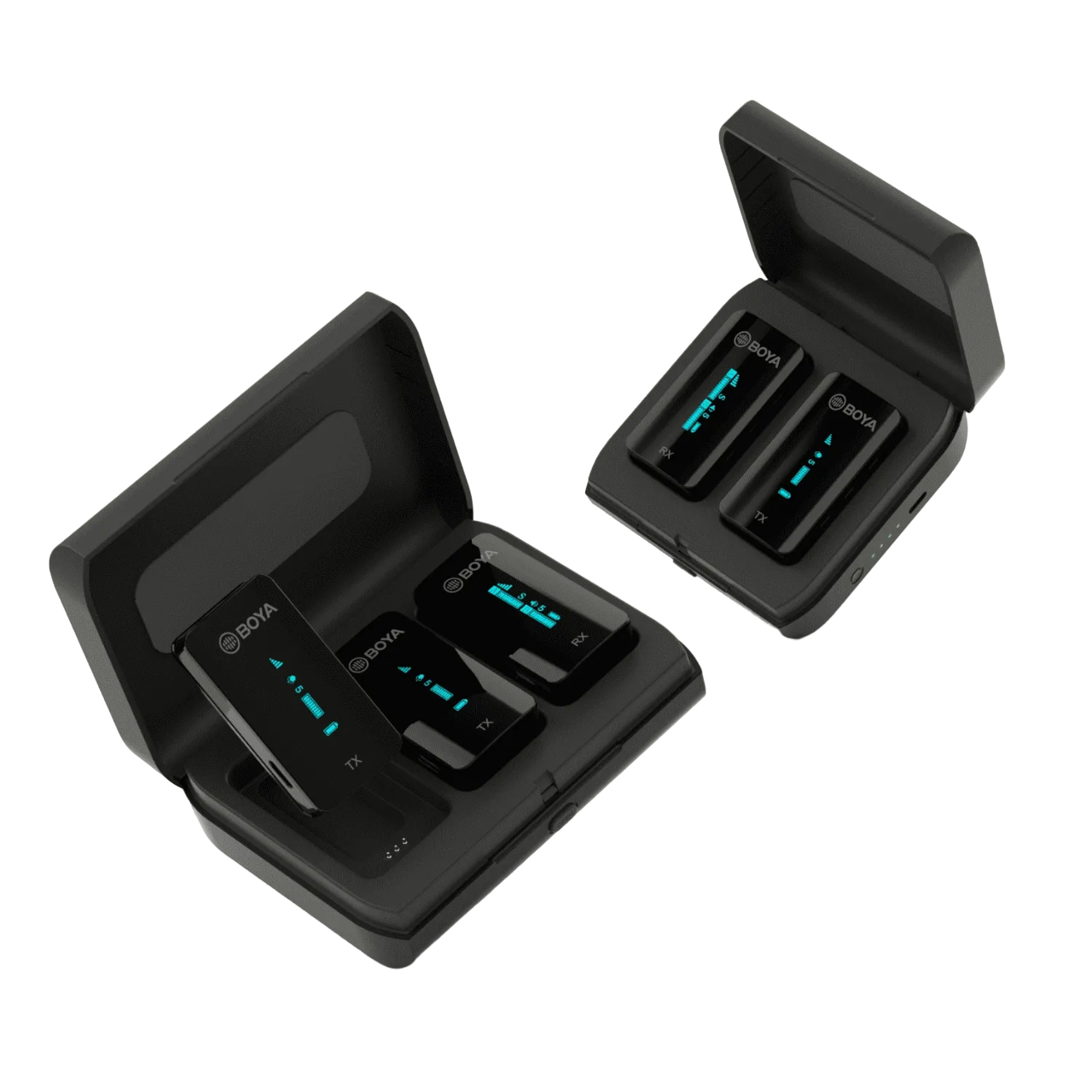 BOYA BY-XM6-K1/K2 ซึ่งเป็นระบบไมโครโฟนไร้สายแบบกระโดดความถี่ที่ปรับได้ 2.4GHz ประกอบด้วยตัวส่งสองตัว ตัวรับหนึ่งตัว และกล่องชาร์จ เป็นการบันทึกเสียงที่สมบูรณ์แบบ ในขณะเดียวกันก็นำเสนอโซลูชันสำหรับวิดีโอบล็อกสองคน, วิดีโอ YouTube, สตรีมมิงแบบสด, การสัมภาษณ์, การบันทึก ฯลฯ