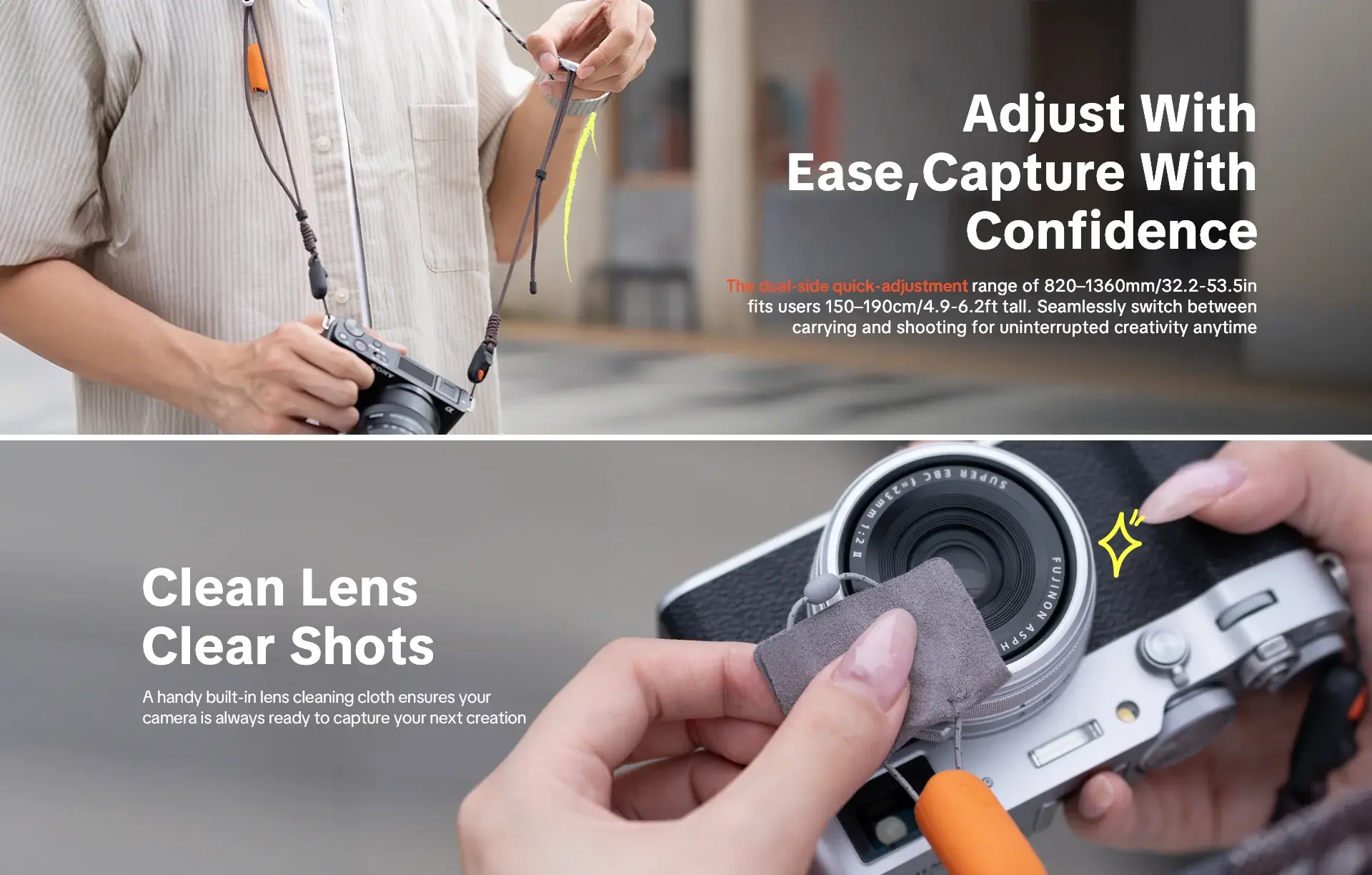 - สบายและไม่เกะกะ: ดีไซน์บาง น้ำหนักเบา ช่วยให้ถ่ายภำพได้อิสระตลอดวัน