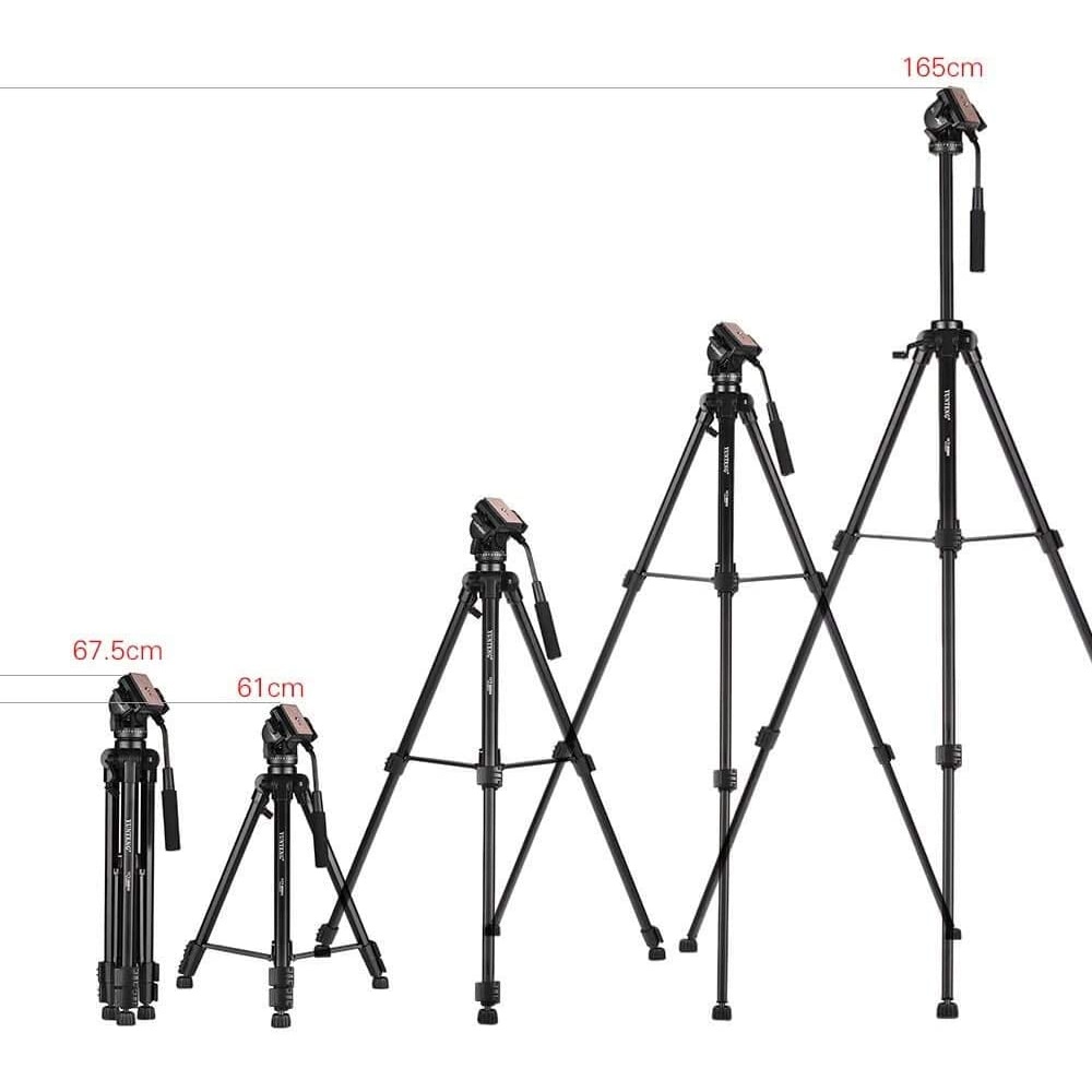 Yunteng VCT-880RM Tripod Kit มาพร้อมหัว Fluid Video Head ขาตั้งกล้อง แบบ 3 ท่อน สามารถใช้ได้ทั้งภาพนิ่ง วีดีโอรับน้ำหนักได้สูงสุด 5 กิโลกรัม หัวแพน หมุนแพน 360 องศา น้ำหนักเพียง 1.8 กิโลกรัม พับเก็บสั้นสุดเพียง 67.5 ซม. ยืดสูงสุด 165 ซม. แข็งแรงทนทาน ทำจากพลาสติก ABS เป็นพลาสติกมีคุณสมบัติทนต่อแรงกด หรือกระแทก